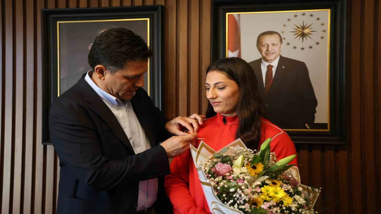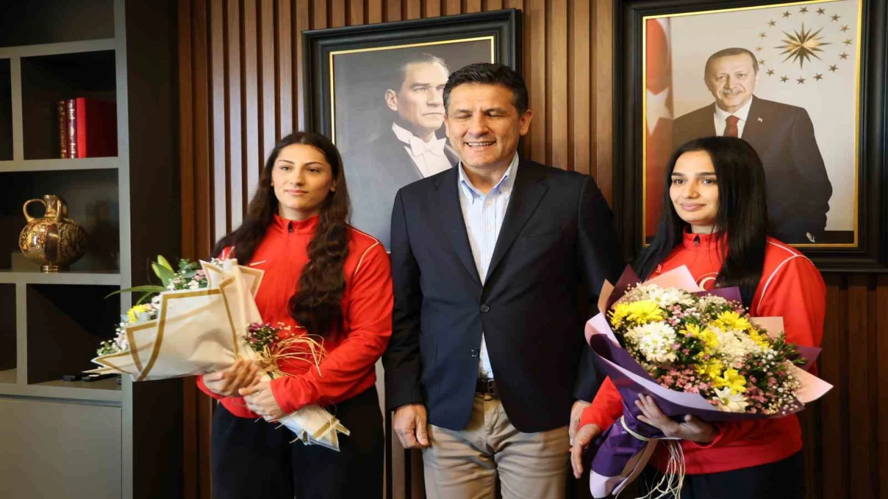 Kozan’da U23 Türkiye Şampiyonu olan kadın güreşçi Hatice Nur Sarı ve Türkiye 2.’si olan Nazmiye Budak’ı, Kozan Belediye Başkanı Mustafa Atlı, altın ile ödüllendirdi.