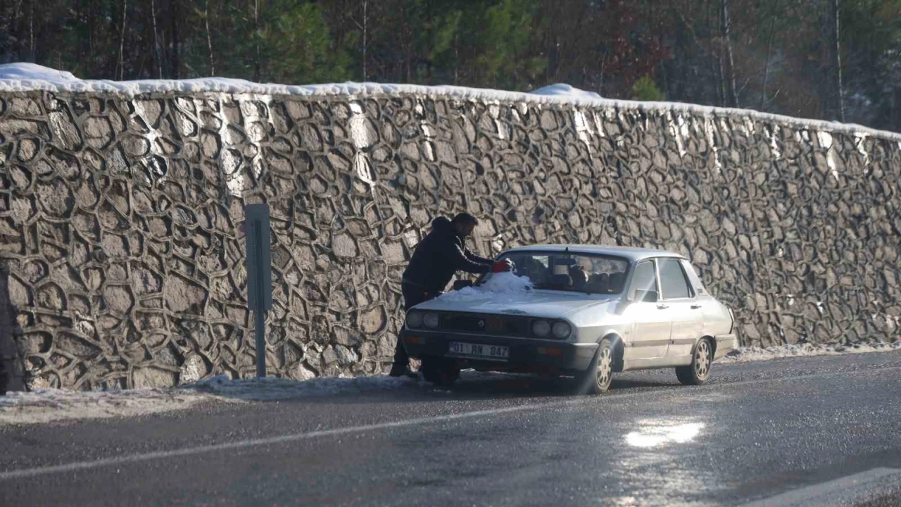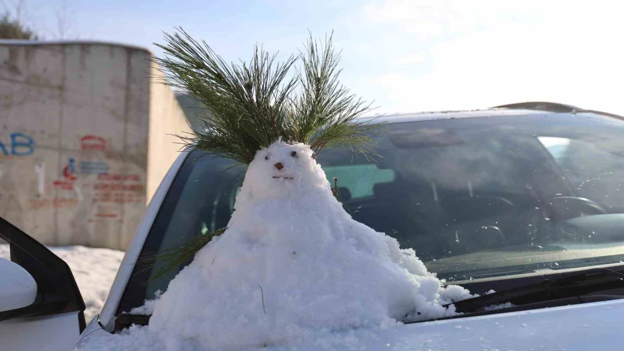 Aracının üzerine kardan adam yapan Şeref Kopçak da, "Horzum’a kar topu oynamaya geldik. Kardan adamı yaptık, onunla Kozan’a ineceğiz" dedi.