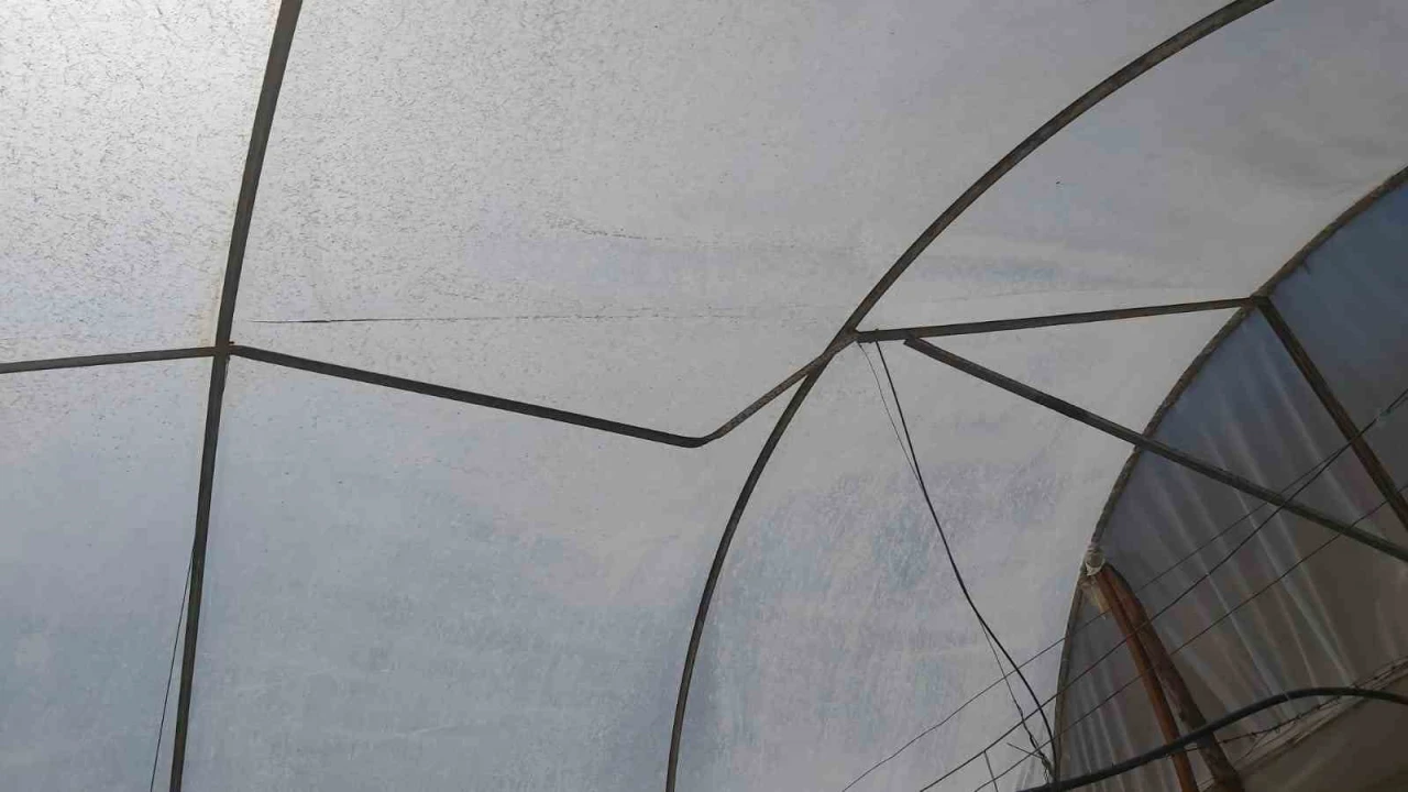 ANTALYA’NIN KUMLUCA İLÇESİ KARACAÖREN MAHALLESİ’NDE OLUŞAN HORTUM, BİRÇOK SERADA HASARA YOL AÇTI. 4 DÖNÜMLÜK SERANIN DEMİR VE PLASTİK YAPILARI KULLANILAMAZ HALE GELDİ.