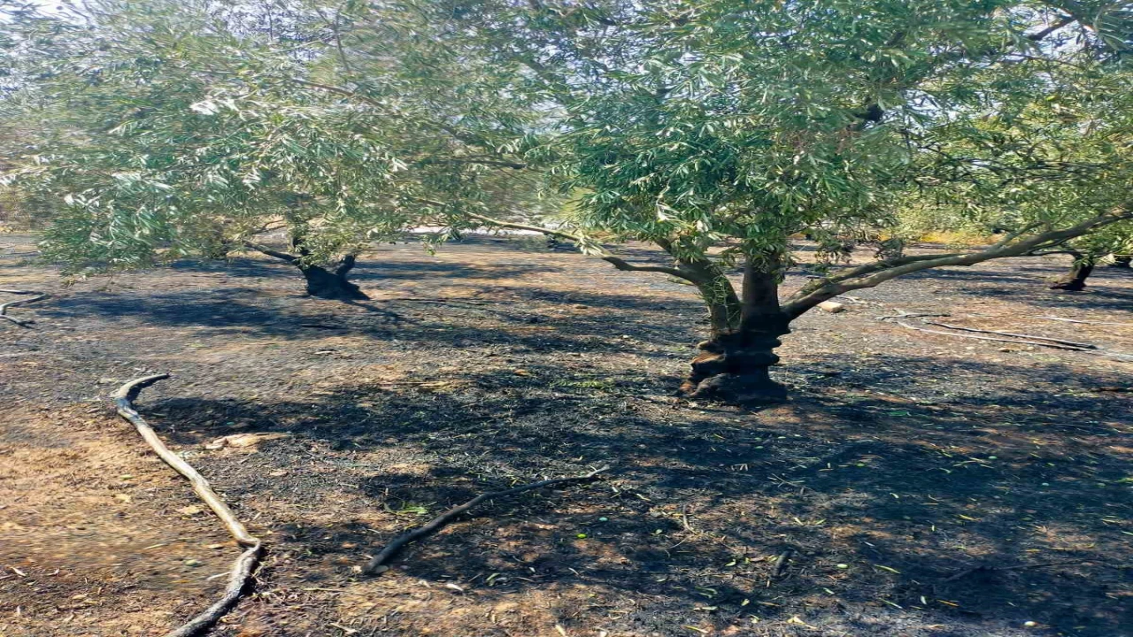 KUMLUCA’DA ÇIKAN YANGINDA 1 DÖNÜMLÜK ZEYTİN BAHÇESİ ZARAR GÖRDÜ.