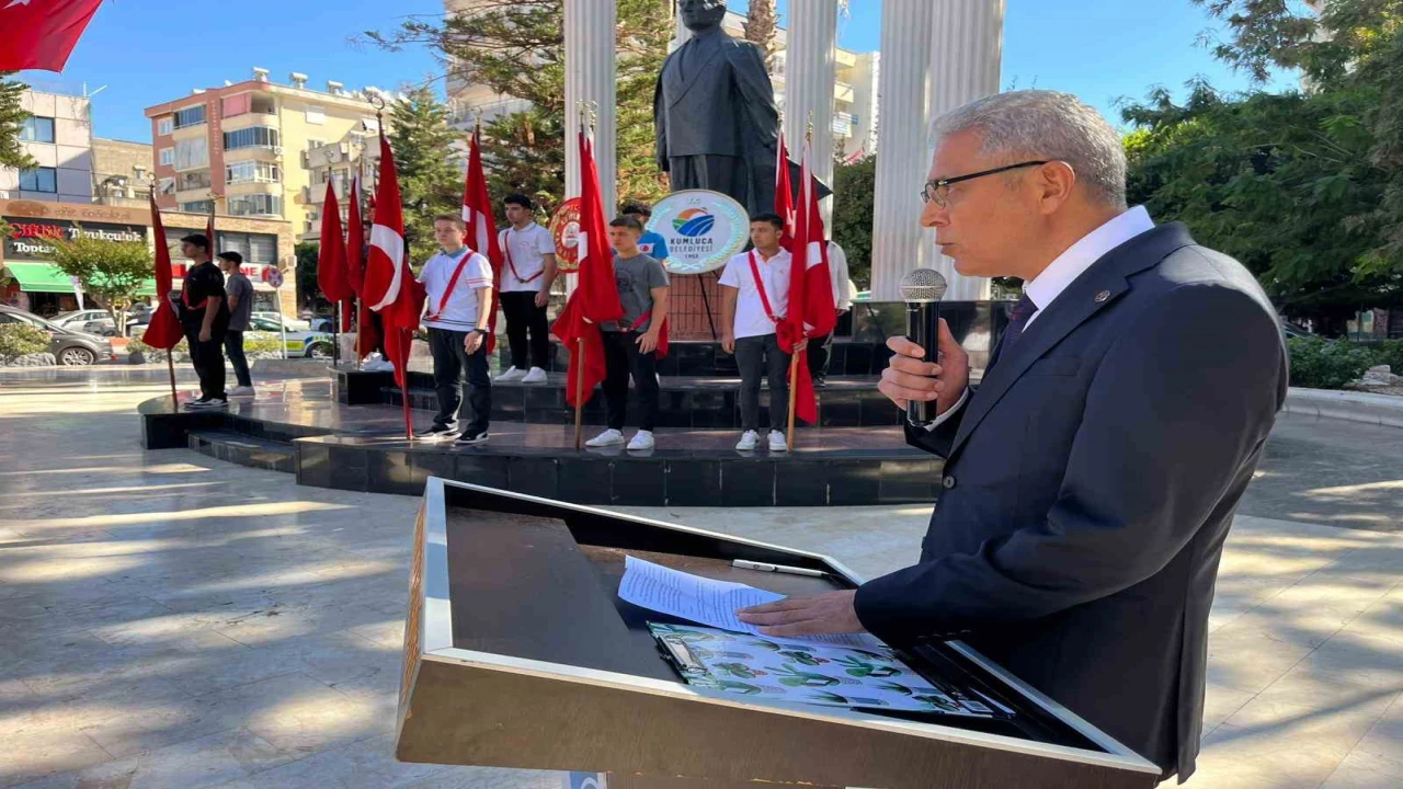 Kumluca Cumhuriyet Meydanında düzenlenen törende Kumluca Kaymakamı Bahadır Güneş ve Kumluca Belediye Başkanı Mesut Avcıoğlu tarafından Atatürk büstüne çelenk konuldu. Ardından Saygı duruşu ve istiklal marşı okundu.