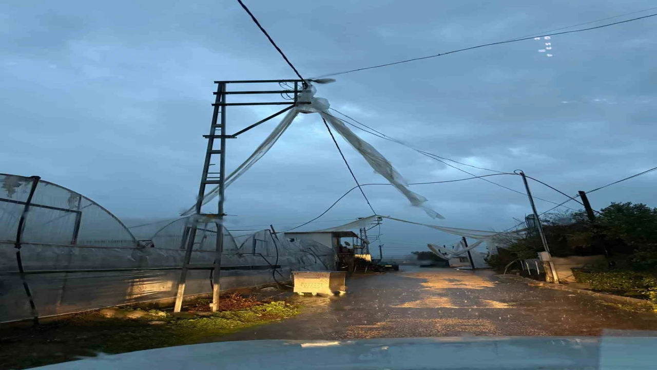 Antalya’nın Kumluca ilçesinde etkili olan sağanak yağış ve hortum, seralarda hasara yol açarken bazı bölgelerde su baskınlarına neden oldu.