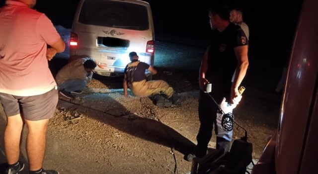 Kumsala batan minibüs uzun süren çabayla kurtarıldı