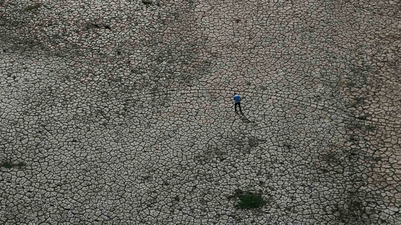 Adana Seyhan Baraj Gölü’nde yağışların azlığıyla çekilen su nedeniyle kuraklığın izi olan çatlayan topraklar dikkat çekmeye başladı.