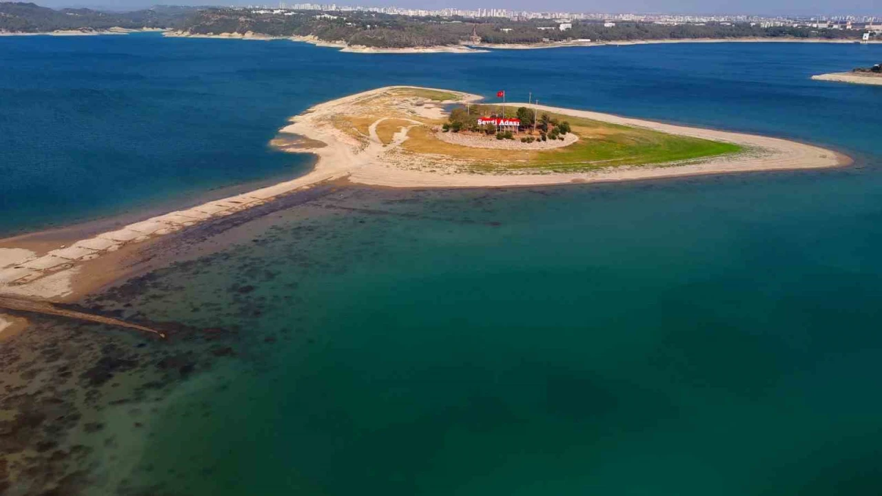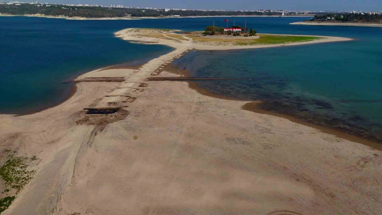 Türkiye’nin en sıcak illerinden Adana’da bu sene az yağış olması ve barajların doluluğunun düşmesi nedeniyle Seyhan Baraj Gölü’nde bulunan kıyıdan 500 metre uzaktaki Sevgi Adası’na bağlantı sağlayan yol ortaya çıktı. Geçmiş yıllarda vatandaşların araçlarıyla gittiği adaya bu sene işletmelerin işgali sonucu sadece yürüyerek gidilebilmesi dikkat çekti.