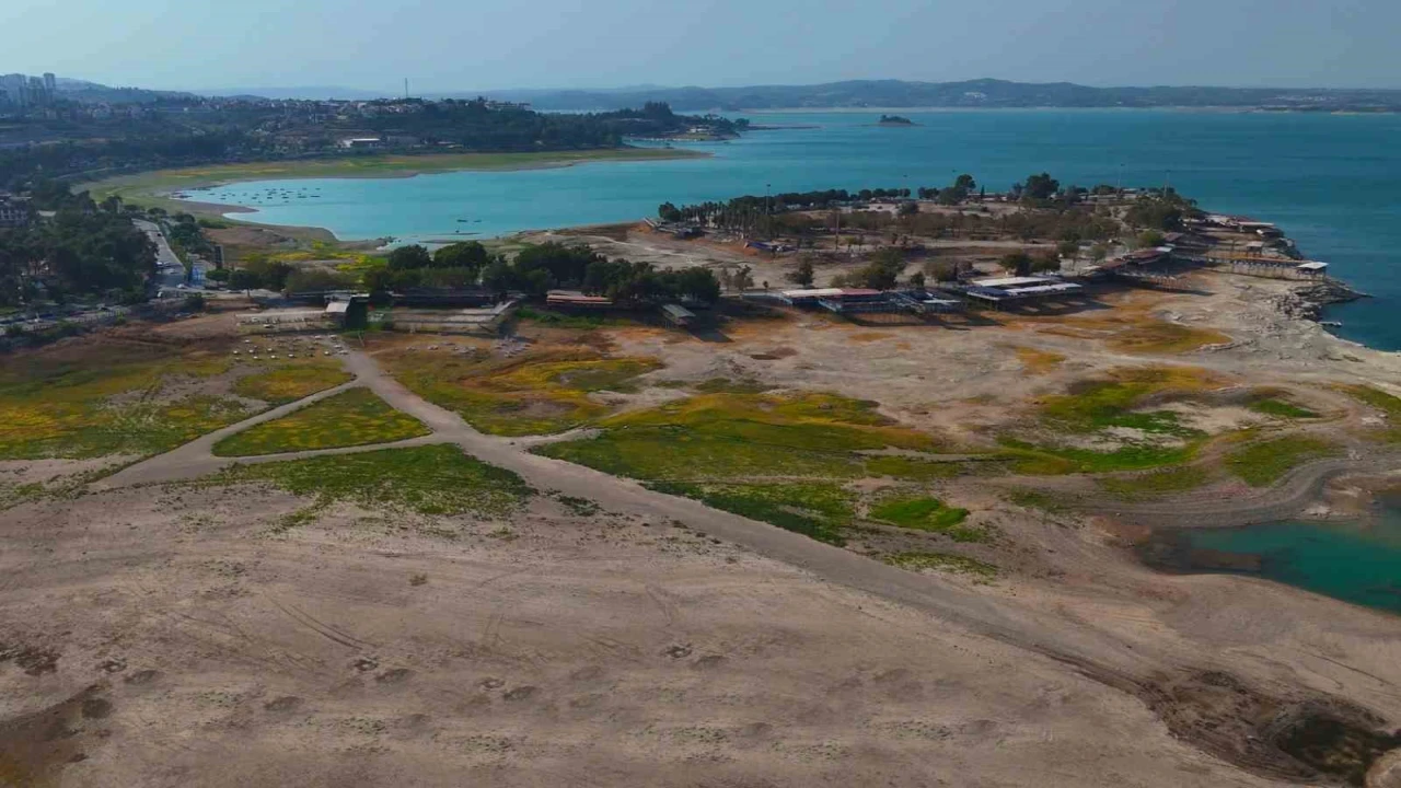 TÜRKİYE’NİN EN SICAK İLLERİNDEN ADANA’DA BU SENE AZ YAĞIŞ OLMASI VE BARAJLARIN DOLULUĞUNUN DÜŞMESİ NEDENİYLE SEYHAN BARAJ GÖLÜ’NDE BULUNAN KIYIDAN 500 METRE UZAKTAKİ SEVGİ ADASI’NA BAĞLANTI SAĞLAYAN YOL ORTAYA ÇIKTI.