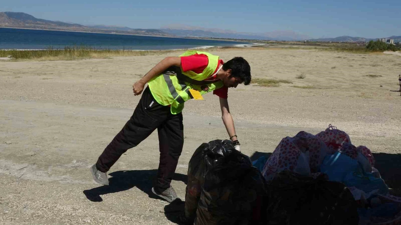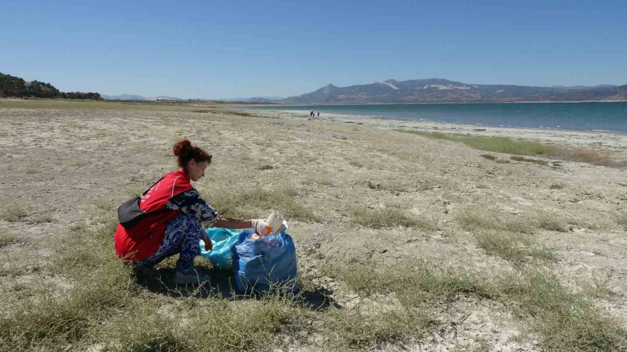 Dünya Temizlik Günü’nde hem çevre temizliği hem de kuraklıkla boğuşan Burdur Gölü’ne dikkat çekmek isteyen gönüllüler göl kenarında çöp topladı.