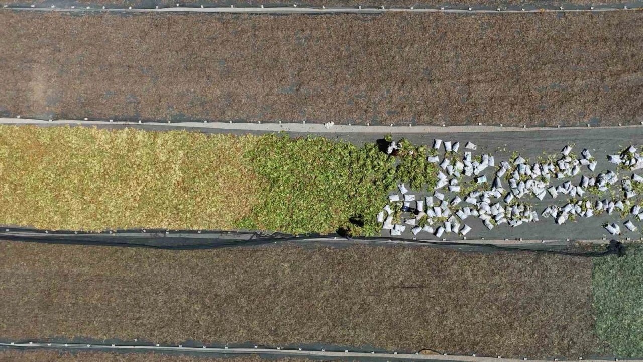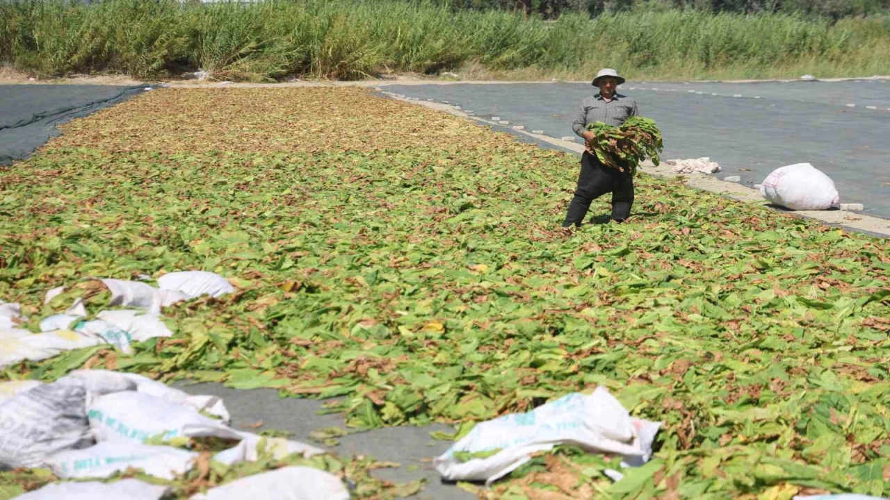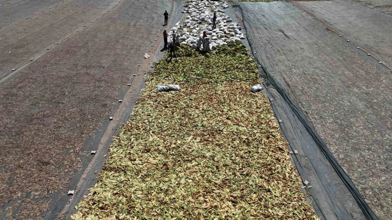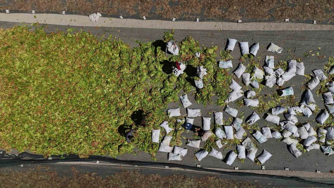 Kurutulmaya bırakılan tütünler, tarım arazilerini renklendirdi