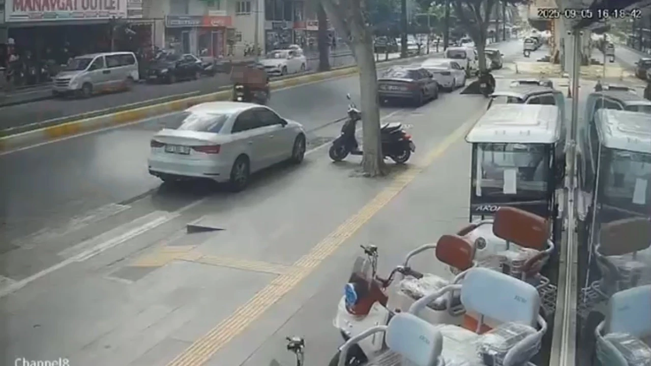 Antalya’nın Manavgat ilçesinde motosikletli iki kuryenin seyir halindeyken çarpışması sonucu 1 kişi ağır yaralandı. Olay anının güvenlik kamerasına yansıdığı kazanın sohbet sırasında meydana geldiği öne sürülürken, yaralanmayan sürücü sadece selamlaştıklarını söyledi.