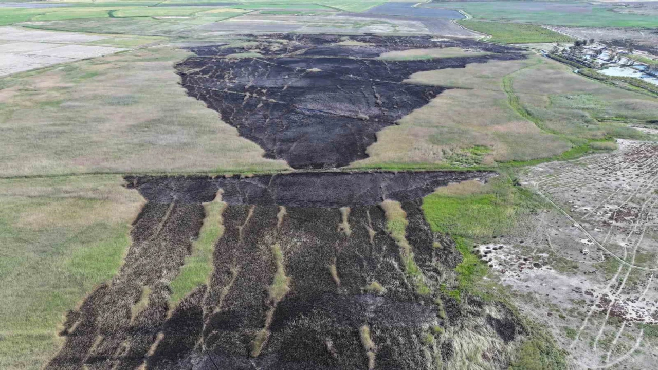 Mersin’in Silifke ilçesinde koruma altında bulunan, kuş cenneti olarak bilinen Göksu Deltası’ndaki sazlık alanda çıkan yangın sabah saatlerinde söndü. Yangın sonrasında bölge havadan görüntülendi.