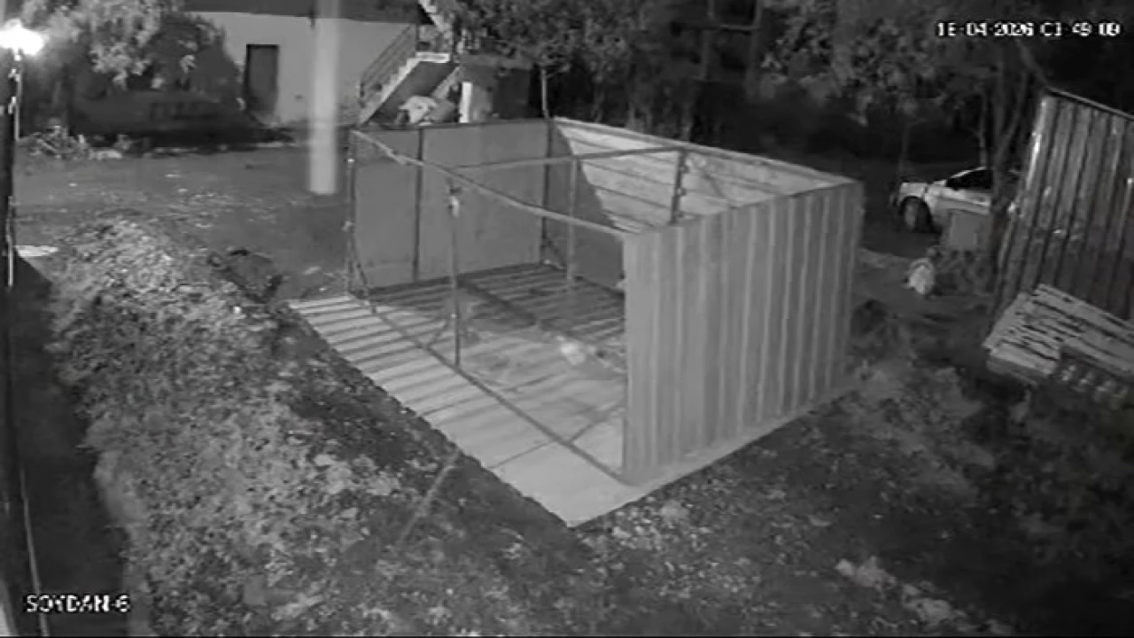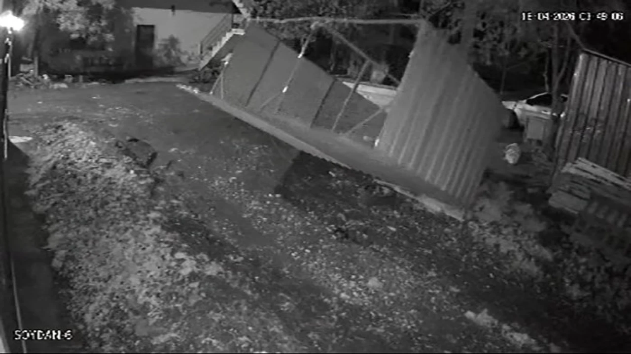 HATAY (İHA) - Hatay'da fırtınanın evin bahçesinde bulunan tavuk kümesini uçurduğu anlar güvenlik kamerasına yansıdı.