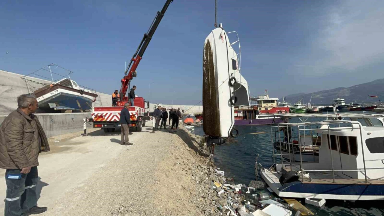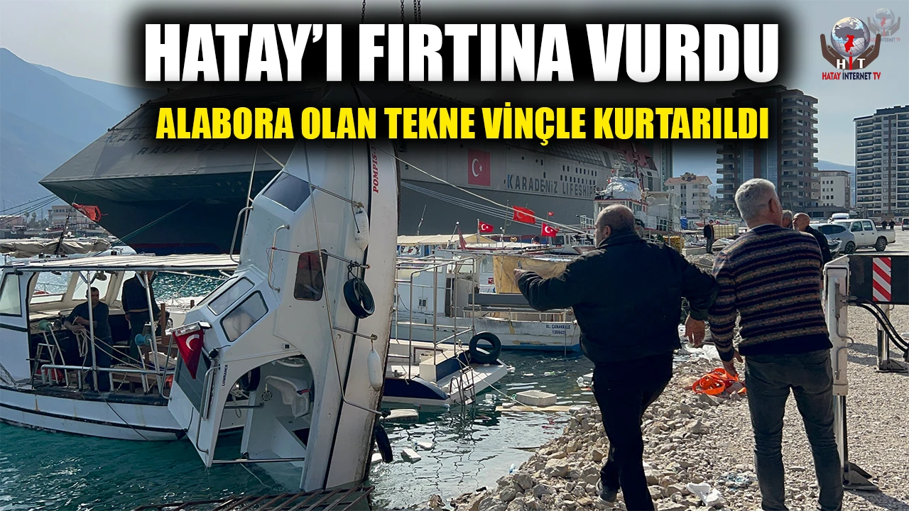 HATAY (İHA) - Hatay’da gece saatlerinde etkili olan fırtınanın etkisiyle alabora olan tekne, havanın aydınlanmasıyla sahibi tarafından vinçle kurtarıldı.