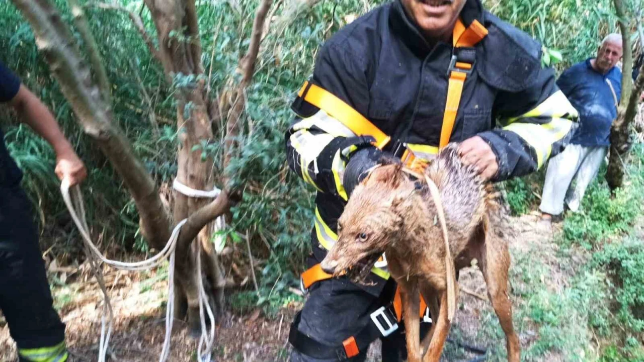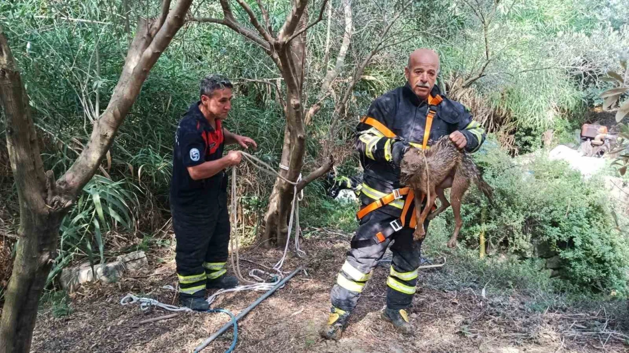Hatay’ın Samandağ ilçesinde kuyuya düşen çakalı itfaiye ekipleri kurtardı.