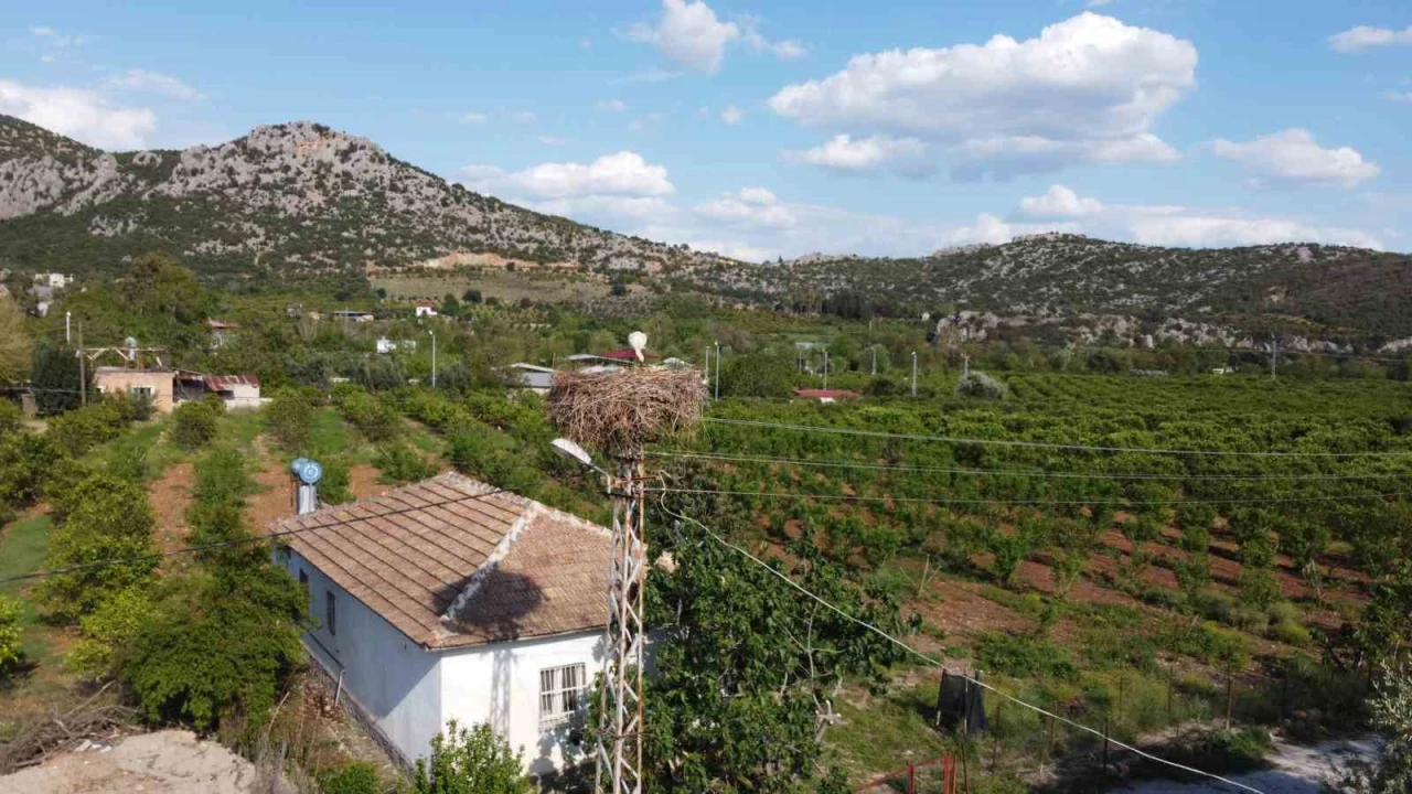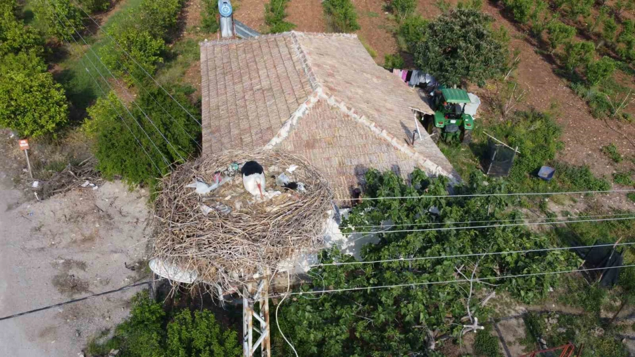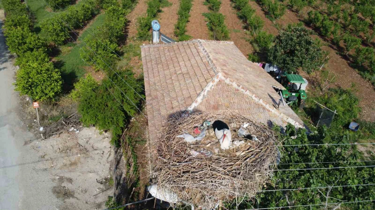 Adana’nın Kozan ilçesine 5 yıldır gelen leyleklerin, yuvaya taşıdığı çöpler dikkat çekti.
