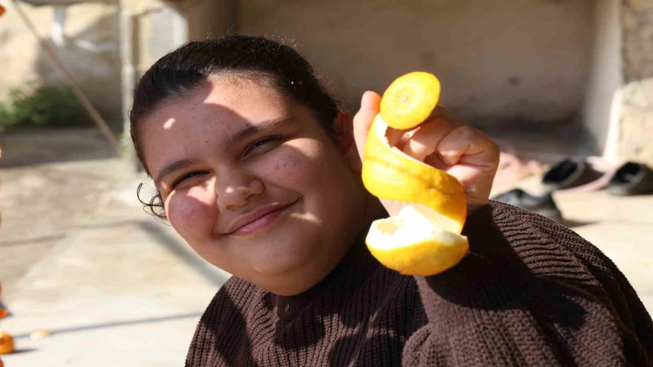 Okul harçlığını limon ve turunç kabuklarından çıkardığını söyleyen Nimet Su Yiğenoğlu, "Babamla annemle birlikte tatilde aileme yardım ediyorum. 60-65 TL’ye alıcı buluyor. Ben de harçlığımı çıkarıyorum. Bahçelerden topluyoruz, soyuyoruz ve kuruyan kabukları satıyoruz" diye konuştu.