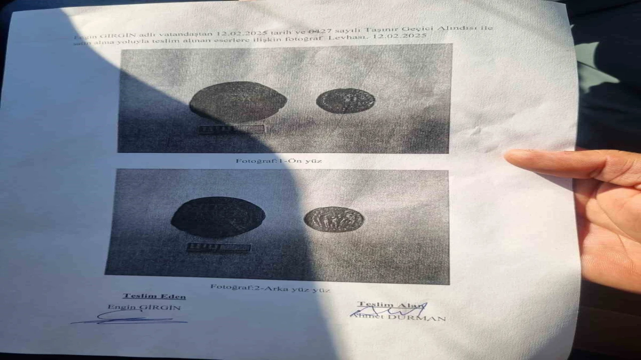 Antalya’da bir lise öğrencisi, hafta sonu ailesiyle gittiği piknik alanında Roma ve Doğu Roma dönemine ait 2 bronz sikke buldu. Genç, bin yıllık olduğu tahmin edilen sikkeleri babası ile birlikte Side Müze Müdürlüğü yetkililerine teslim etti.