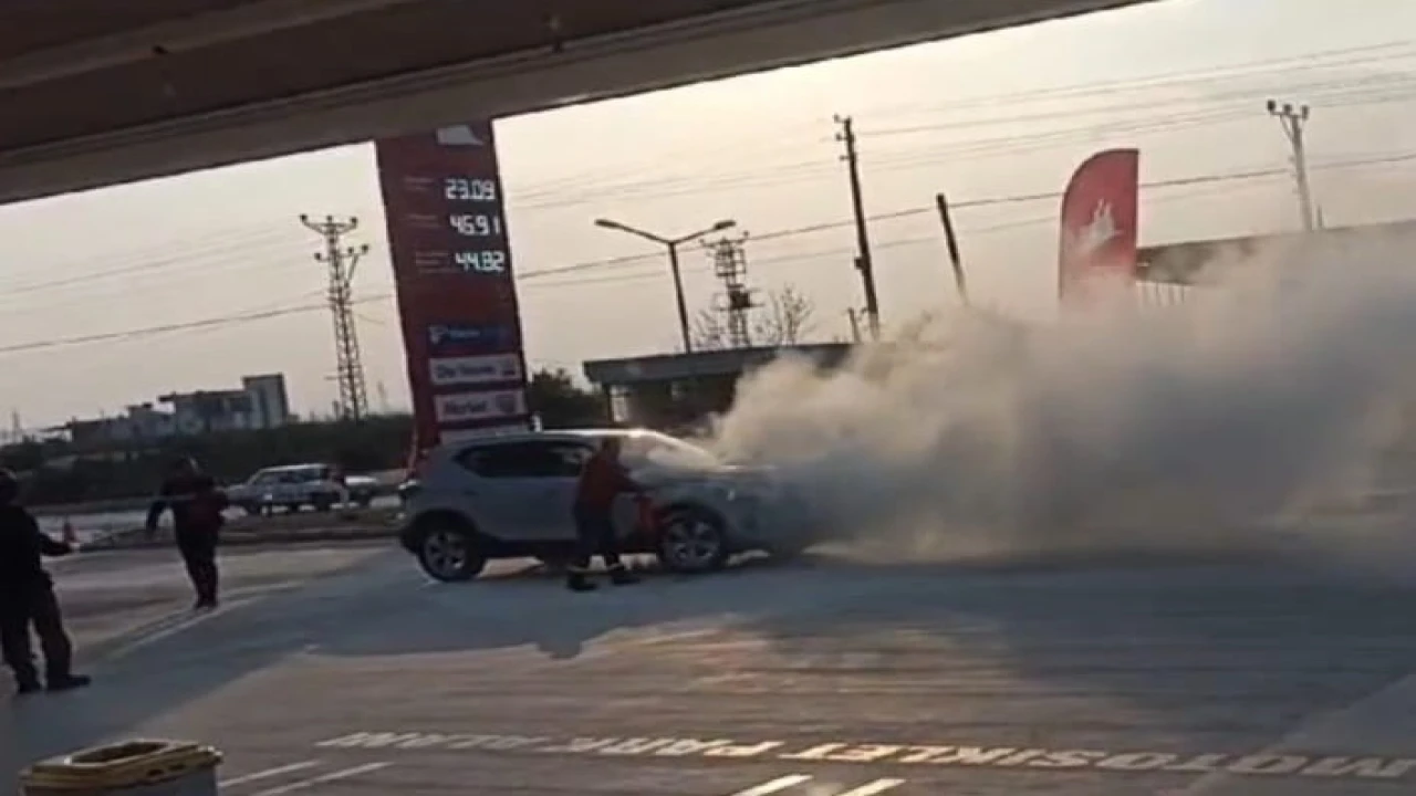 Adana’nın Kozan ilçesinde akaryakıt istasyonuna girerken dumanlar çıkmaya başlayan otomobile istasyon çalışanları yangın tüpü ile müdahale etti. Daha sonra olay yerine gelen itfaiye ekipleri, söndürme ve soğutma çalışması gerçekleştirdi.