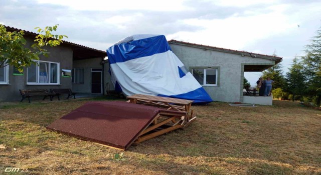 Tekirdağ’ın Malkara ilçesini sağanak yağış vurdu. Sağanak yağışla birlikte çıkan hortum da kamp alanını yerle bir etti.