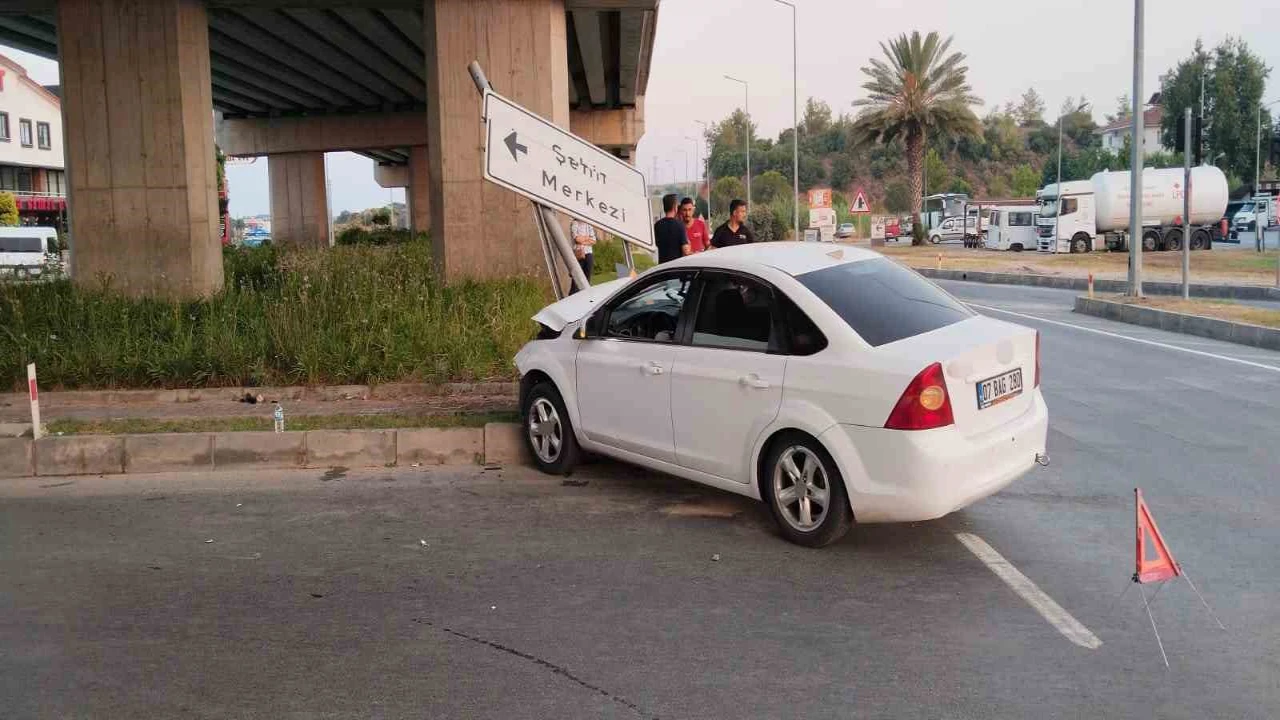Antalya’nın Manavgat ilçesinde trafik lambalarının çalışmadığı kavşakta iki otomobil çarpıştı. Çarpmanın etkisiyle trafik levhasına çarpan araçtaki sürücü yaralandı.