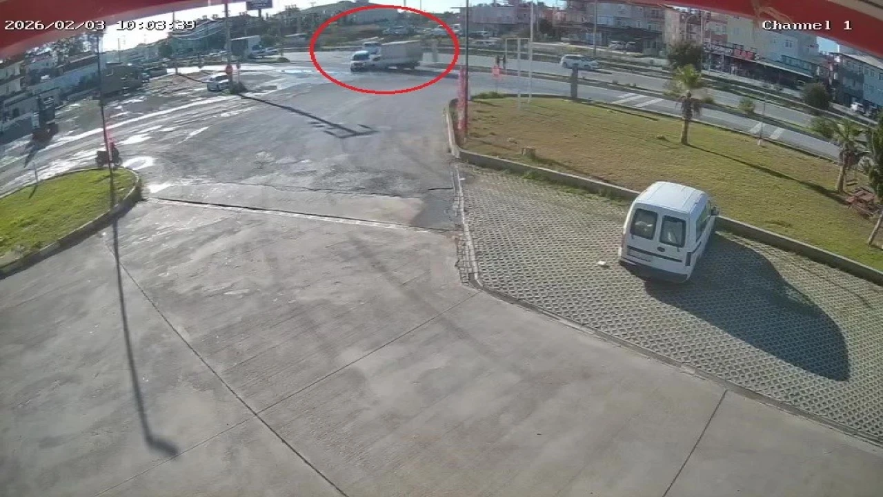 Kaza, Manavgat-Antalya D-400 kara yolunda meydana geldi. Edinilen bilgiye göre, Antalya yönünde Hatipler Yenimahalle kavşağından tali yola dönen M.Y.’nin kullandığı 07 CGL 114 plakalı hafif ticari araç, H.K.’nın kullandığı 07 BGV 43 plakalı kamyonet ile çarpıştı. Kazada hafif ticari aracın sürücüsü yaralandı. Yaralı, 112 sağlık ekiplerinin olay yerindeki müdahalesinin ardından ambulansla hastaneye kaldırıldı. Kaza anı ise güvenlik kamerasına saniye saniye yansıdı.