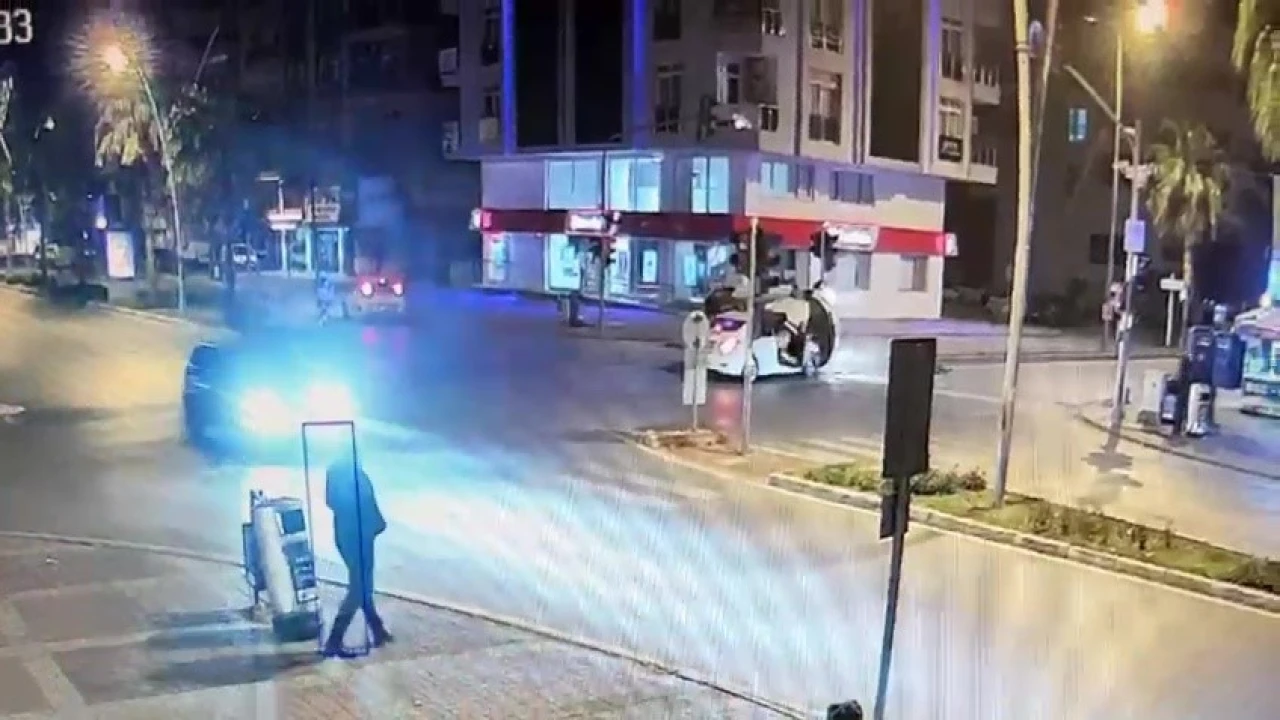 Manavgat’ta kavşak sisteminde çarpışan 2 otomobilden birisi yan yatarken, kazada şans eseri yaralanan olmadı. Kaza anı ise bir işyerinin güvenlik kamerasına saniye saniye yansıdı.