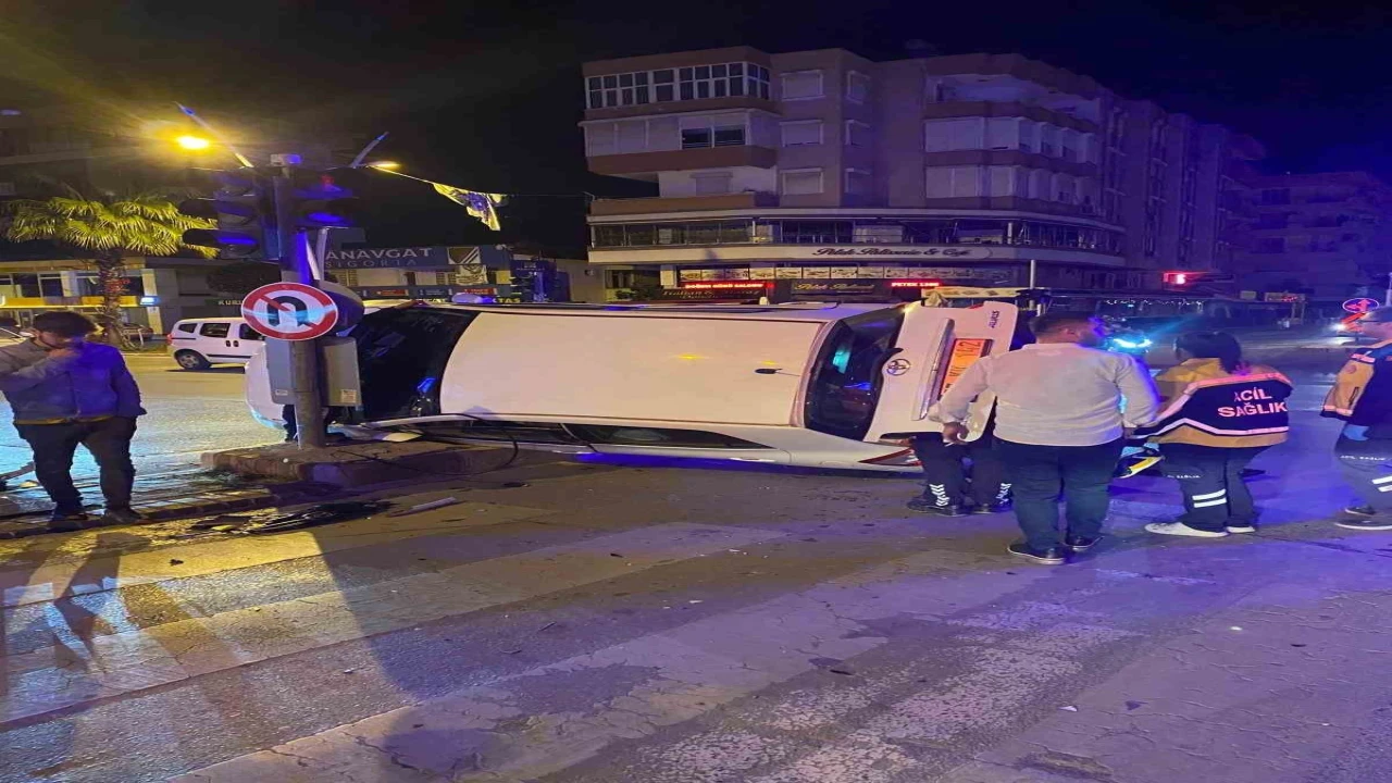 Kaza, Manavgat ilçesi Demokrasi Bulvarı üzerinde meydana geldi. Çevreyolu istikametine gitmekte olan Onur T.’nin kullandığı 01 BAB 540 plakalı Hyundai marka otomobil, Güllük Caddesinden Demokrasi Bulvarı’na çıkan Hicran G.’nin kullandığı 07 KK 142 plakalı Toyota marka otomobille kavşak sisteminde çarpıştı. Trafik ışıklarının fasılada olduğu sırada meydana gelen ve güvenlik kamerasına saniye saniye yansıyan kazada 07 KK 142 otomobil çarpmanın şiddetiyle devrilirken, araçta bulunanların yardımına çevredeki vatandaşlar yetişti. Kazada şans eseri yaralanan olmadı.