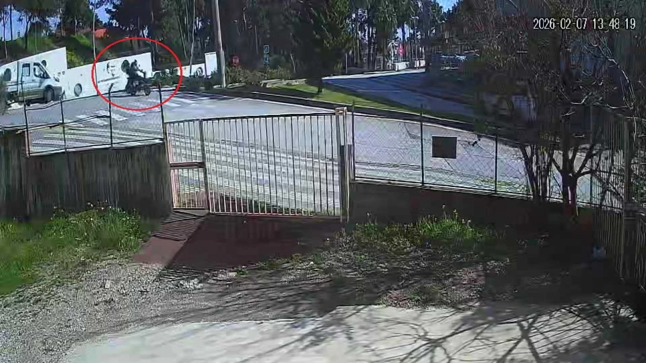 Antalya’nın Manavgat ilçesinde seyir halindeki motorlu bisiklet refüj bordürüne çarparak takla attı. Güvenlik kamerasına yansıyan kazada anne ve kızı yaralandı.