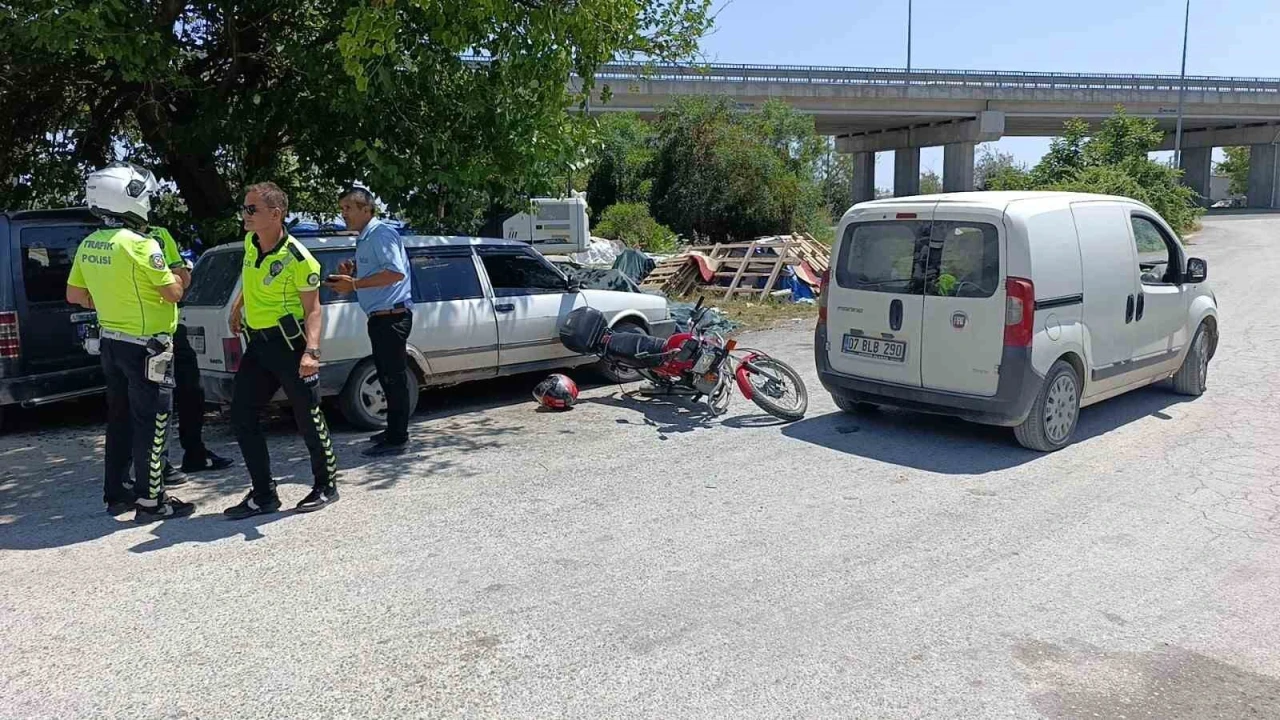 Manavgat ilçesinde, motosikletin hafif ticari araca çarpması sonucu meydana gelen kazada 1 kişi yaralandı. Yaralı sürücü, sağlık ekiplerinin olay yerindeki müdahalesinin ardından ambulansla hastaneye kaldırıldı.