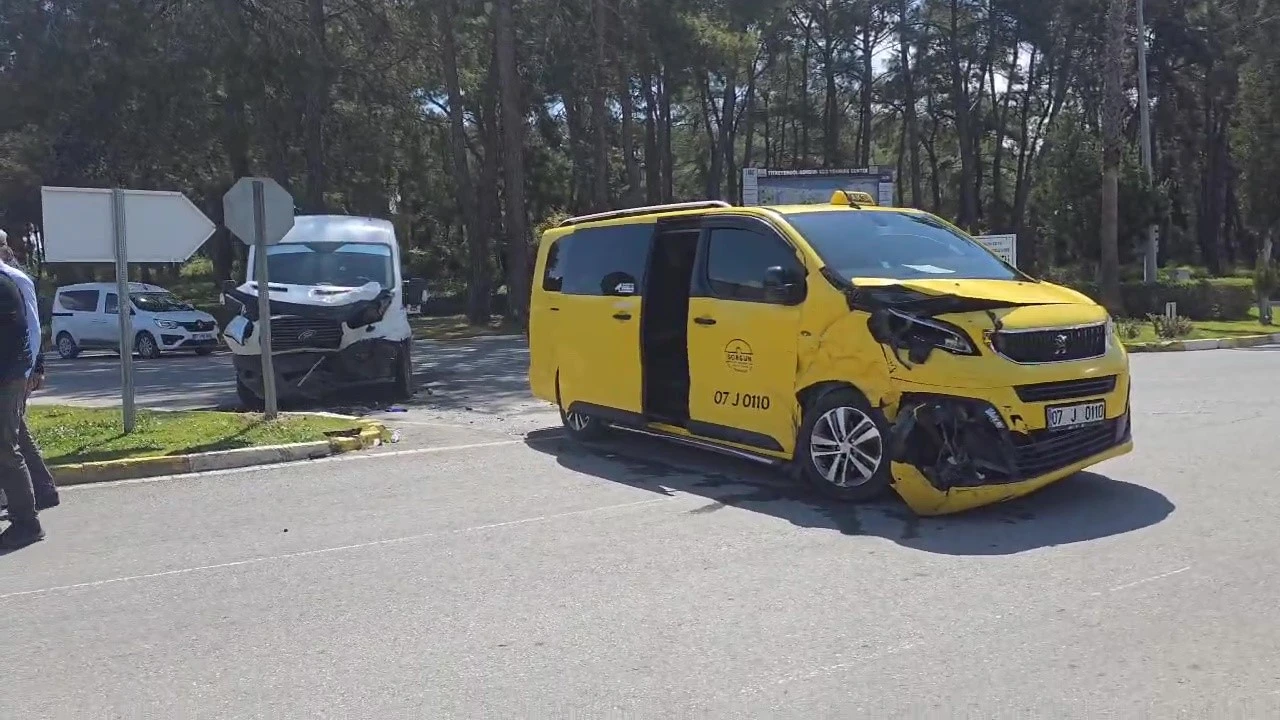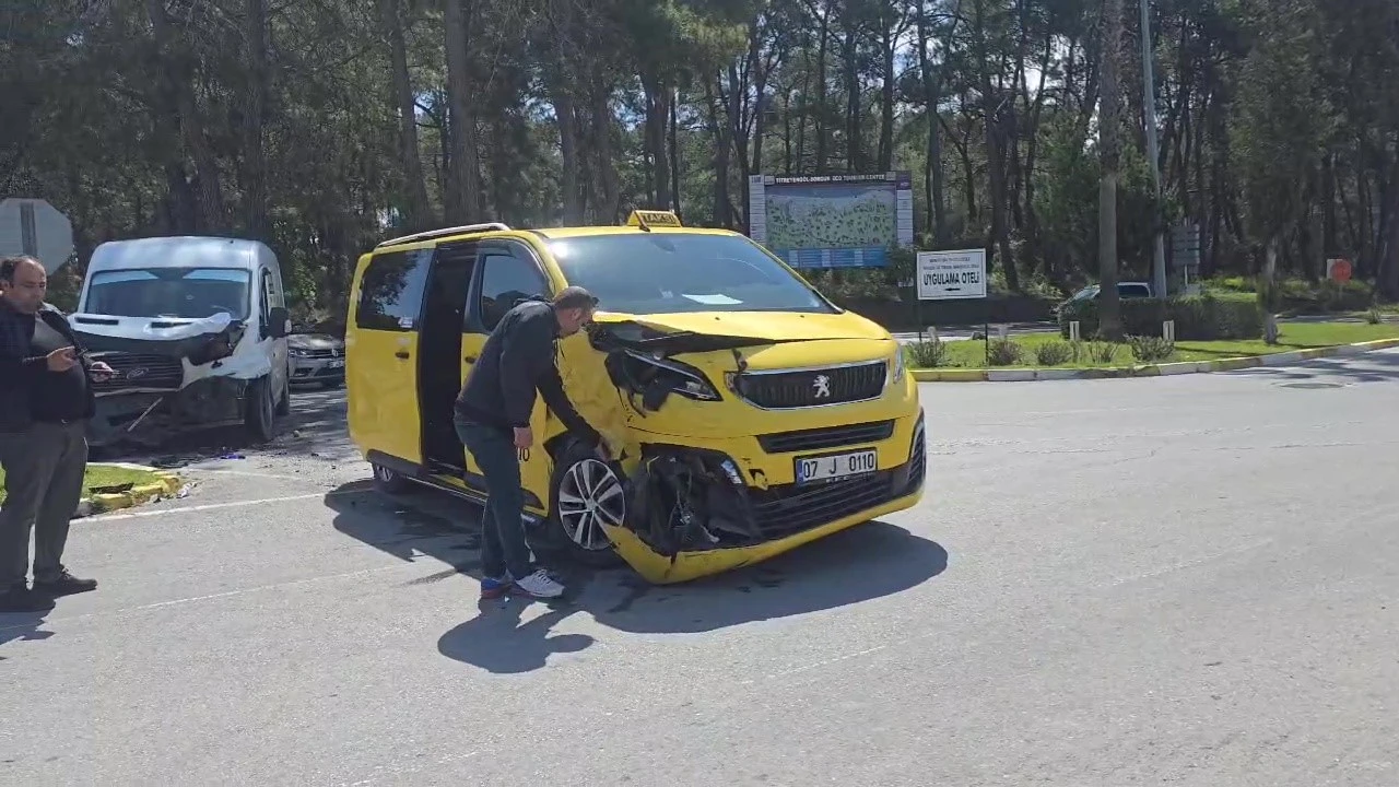 Antalya Manavgat’ta ticari taksi ile kamyonetin çarpıştığı kazada 4 kişi yaralandı.