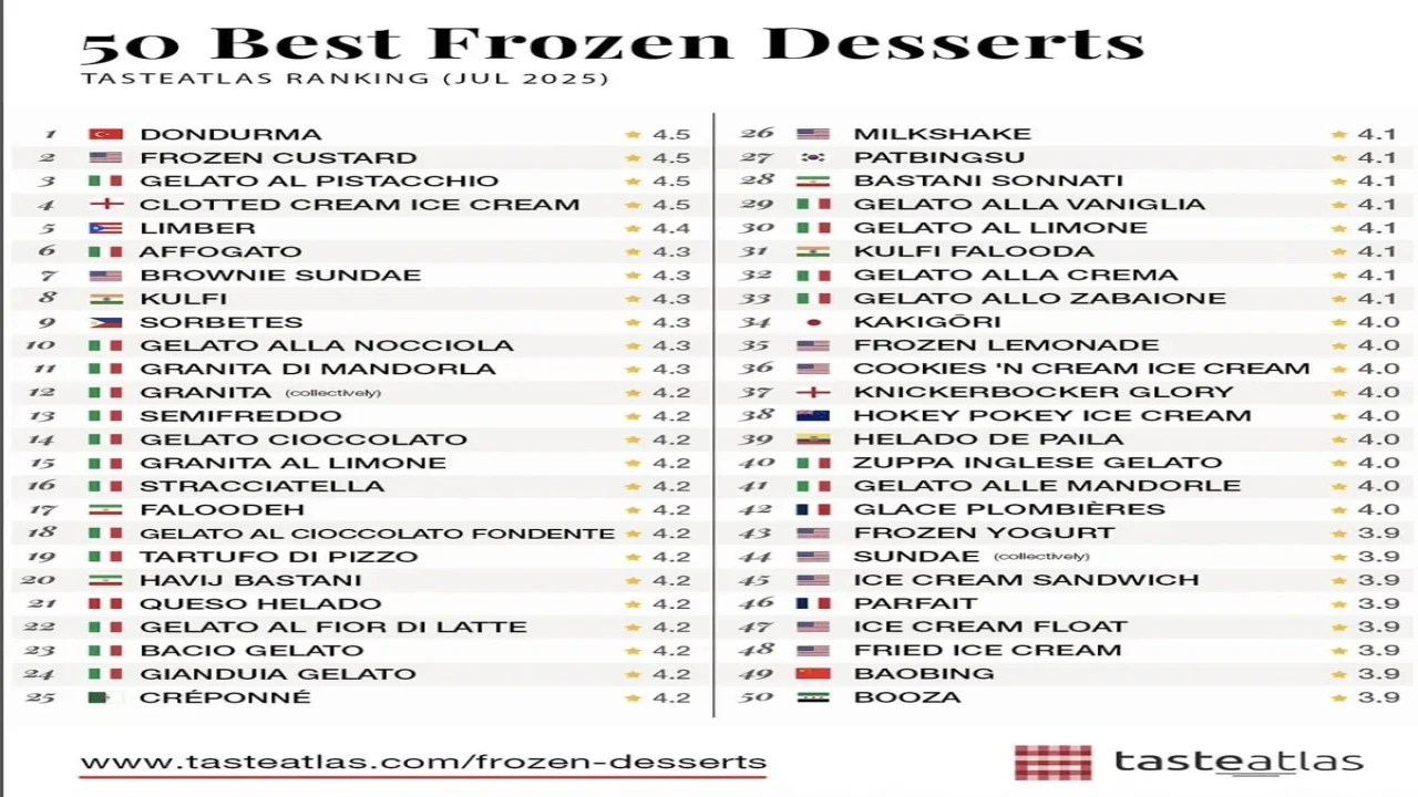 TasteAtlas’ın yayımladığı listede ilk ona giren tatlılar arasında Amerika’dan "Frozen Custard", Hindistan’dan "Kulfi", İtalya’dan "Gelato al Pistacchio" ve Porto Riko’dan "Limber" gibi lezzetler de yer aldı. Ancak Türkiye’yi listede temsil eden tek tatlı, Kahramanmaraş’ın dünyaca tanınan dondurması oldu. Maraş dondurmasının uluslararası başarıyla kentin gastronomi turizmi potansiyeline de dikkati çekti. Haberi öğrendiklerini ve çok mutlu olduklarını ifade eden Kahramanmaraşlılar ise duygularını paylaşarak, Maraş dondurması ile yaz mevsiminde serinlediklerini söyledi.