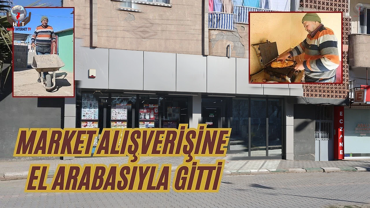 HATAY’DA 40 YILDIR TOSTÇULUK YAPAN ABDULLAH ÇAKARLAR, POŞET YERİNE EL ARABASIYLA MARKETTE ALIŞVERİŞ YAPTIĞI O ANLAR CEP TELEFONU KAMERASINA YANSIDI.