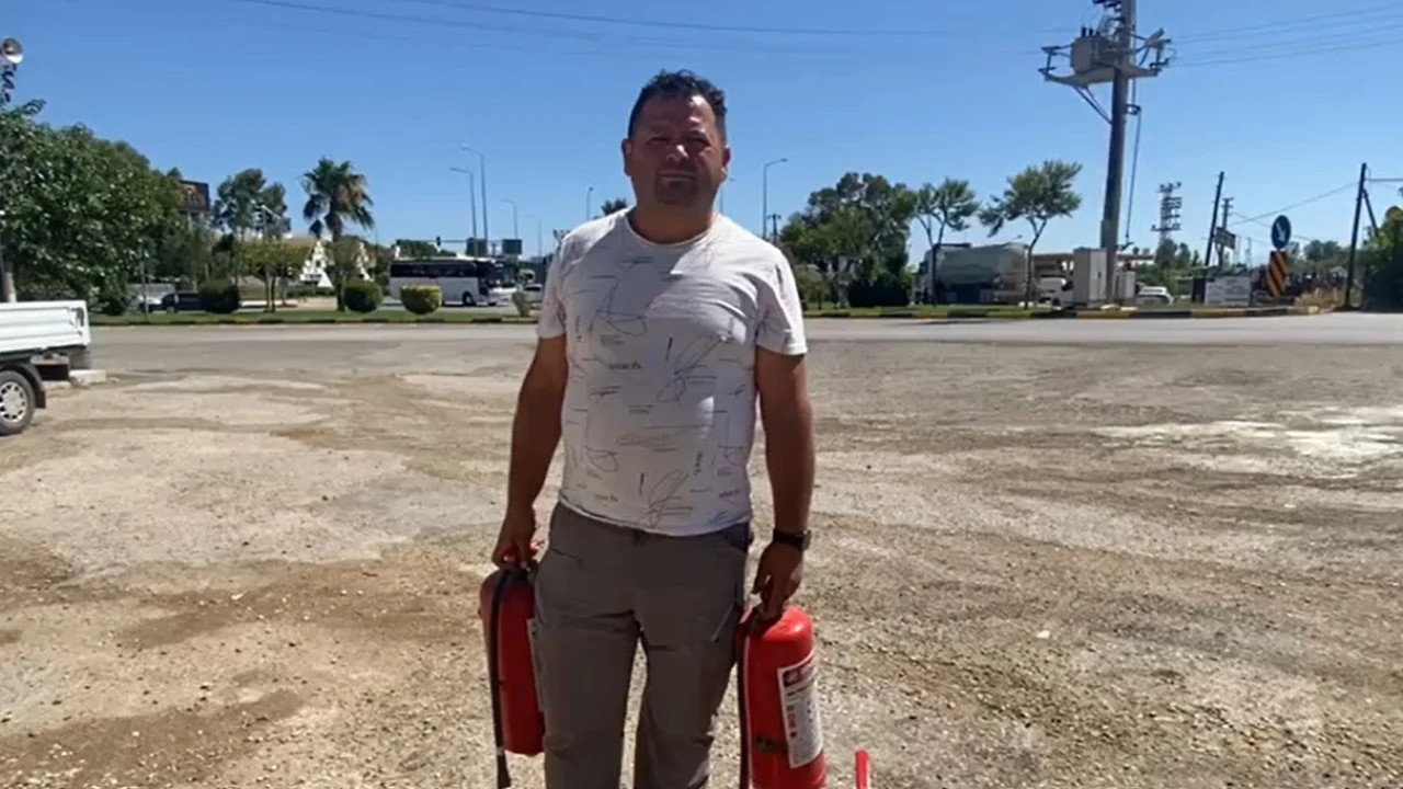 Olay anında yangın tüpleri ile alevlere müdahale eden Mehmet Altınkurt, "Cuma namazından çıktıktan sonra iş yerime geldim. Baktım bir hareketlilik var. İlk önce anlayamadım ne olduğunu ama sonra fark ettim ki bir vatandaşın aracı yanıyor. Bizim de işlerimiz plastik ürünler üzerinde olduğu için her zaman güvenlik açısından yangın tüpü bulundururuz. Aklıma geldi ve yangın tüpleriyle yangına müdahale ettim. Araç benimmiş değilmiş hiç önemsemedim. Mahalle arasında olduğu için daha büyük bir tehlike oluşturabileceğini düşündüm. Müdahale ettim canım pahasına. Vatandaşlık görevimi yaptım. Allaha şükür zararsız bir şekilde kurtardık aracımızı. Arkadaşlar yangın tüplerini bana ulaştırma da zorluk çektirdiler. Dükkanda devamlı ben durduğum için tarif ettim onlara. Çevrede bulunan esnaf arkadaşlarda yardımcı oldular. Onlarında yangın tüplerini kullandık. Yangın tüplerinin kimisi dolu kimisi boştu. Yangın esnasında bir panik oldu. O anda aracın tüplü olduğunu duydum. Mahalle arasında büyük bir felakete yol açabilir diye panik olduk. Allah’a şükür zararsız bir şekilde kurtardık. Biraz daha duyarlı olmamız gerekiyor. Evimizde, iş yerimizde, aracımızda illa ki bir yangın tüpü olması lazım. Eğer yangın tüpümüz olmasaydı itfaiye gelene kadar belki araç tamamen yanardı. Belki de araçtaki tüp patlar ve çevreye büyük bir zarar verebilirdi. Allaha şükür böyle bir şey olmadı. Mutluyum, vatandaşlık görevi yaptım. Allah razı yardımcı olanlardan" şeklinde konuştu.