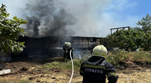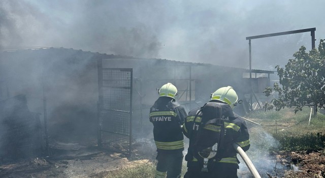 Muğla’nın Marmaris ilçesinde bir ahırda samanların alev alması sonucu çıkan yangın panikletti.