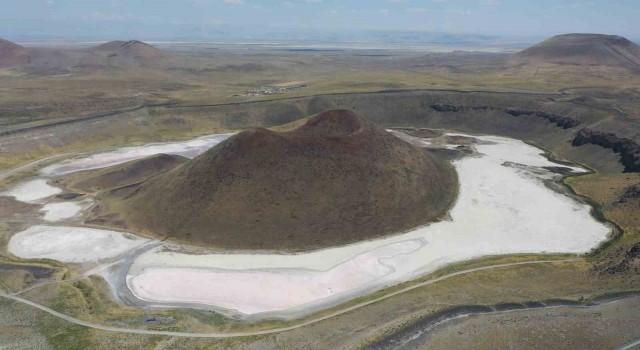 Konya’nın Karapınar ilçesinde “Dünya’nın Nazar Boncuğu” olarak bilinen Meke Gölü, kurumasına rağmen ziyaretçilerini ağırlamaya devam ediyor.