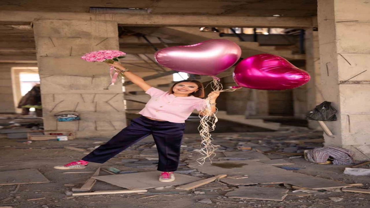 Şantiyede işçileri ve balonlarla fotoğrafı çekildi