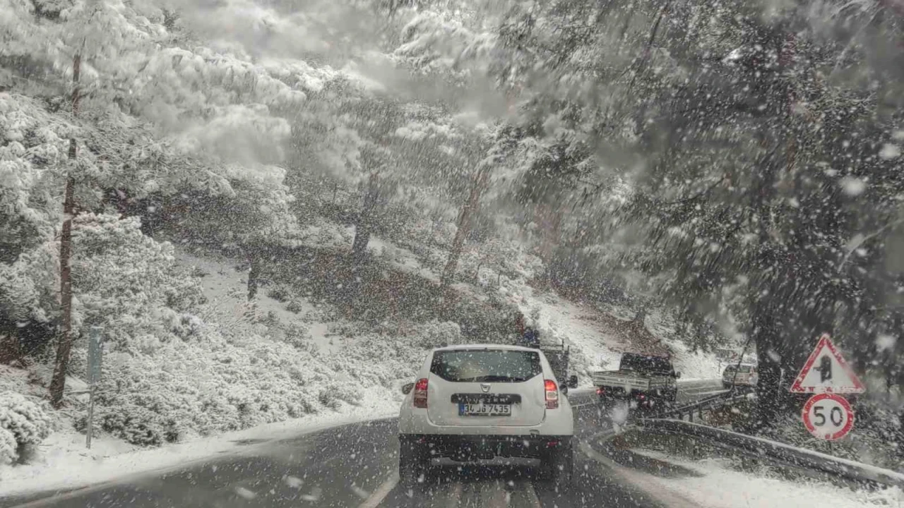 Mersin-Antalya arasında lapa lapa kar yağdı, o anlar görsel şölen oluşturdu.