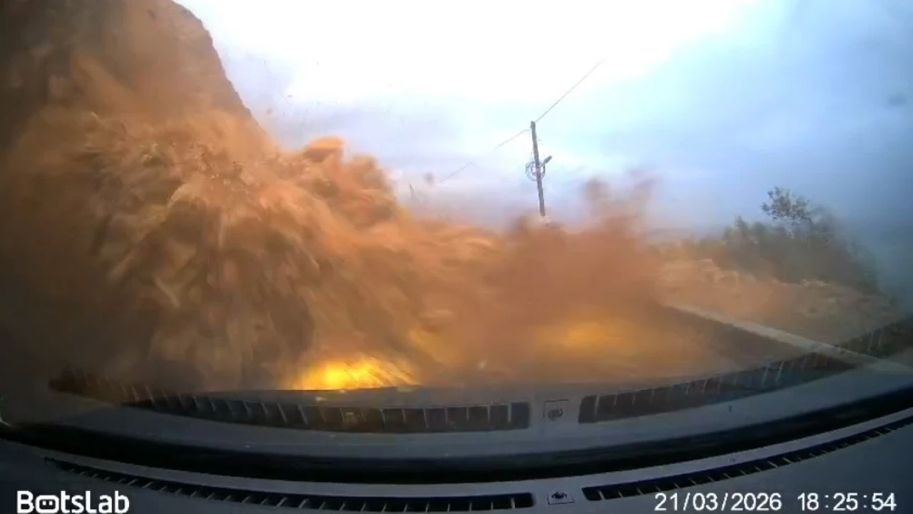 Mersin-Antalya Karayolunun Aydıncık ilçesi sınırları içerisinde meydana gelen heyelan, toprak altında kalan aracın araç kamerasına yansıdı. Görüntülerde, seyir halindeki aracın bir anda dağdan yuvarlanan toprak ve kaya parçalarının altında kaldığı anlar yer aldı.