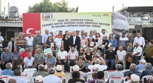 Büyükşehir Belediye Başkanı Vahap Seçer’in de katıldığı Tarımsal Destek Dağıtım Töreni’nde 3 bin üreticiye sera ipi, bin üreticiye yapışkan tuzak, Akdeniz Meyve Sineğine Karşı Hidrolize Protein Dağıtımı Projesi kapsamında ise 888 narenciye üreticisine 14 bin 170 litre hidrolize protein ve Akdeniz Ziraat Odası’na 1 adet toprak analiz cihazı desteği yapıldı.