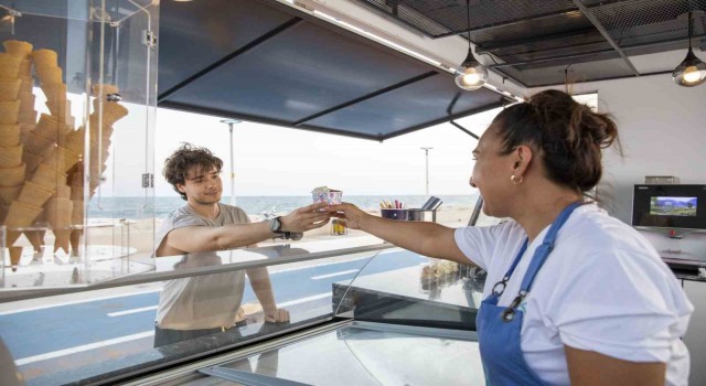 MERSİN’DE ‘SAHİLLERİ RANTA DEĞİL, HALKA AÇACAĞIZ’ SLOGANIYLA YOLA ÇIKAN MERSİN BÜYÜKŞEHİR BELEDİYESİ, SAHİLDE YÜRÜYÜŞ YAPANLARIN YOL ÜZERİNDE UĞRAK NOKTALARINDAN BİRİSİ OLAN ‘DONDURMA KİOSKU’ SICAKLARDAN BUNALAN VE YÜRÜYÜŞÜNE SERİN VE TATLI BİR HAVA KATMAK İSTEYENLERE BUZ GİBİ VE LEZZETLİ DONDURMALAR İLE HİZMET VERİYOR.