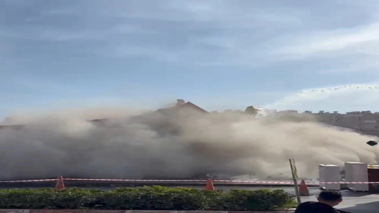 Mersin’in Tarsus ilçesinde operatör, hasar gören 2 katlı binayı kırıcıyı yere vurarak titreşimle yıktı. O anlar cep telefonu kamerasına yansıdı.
