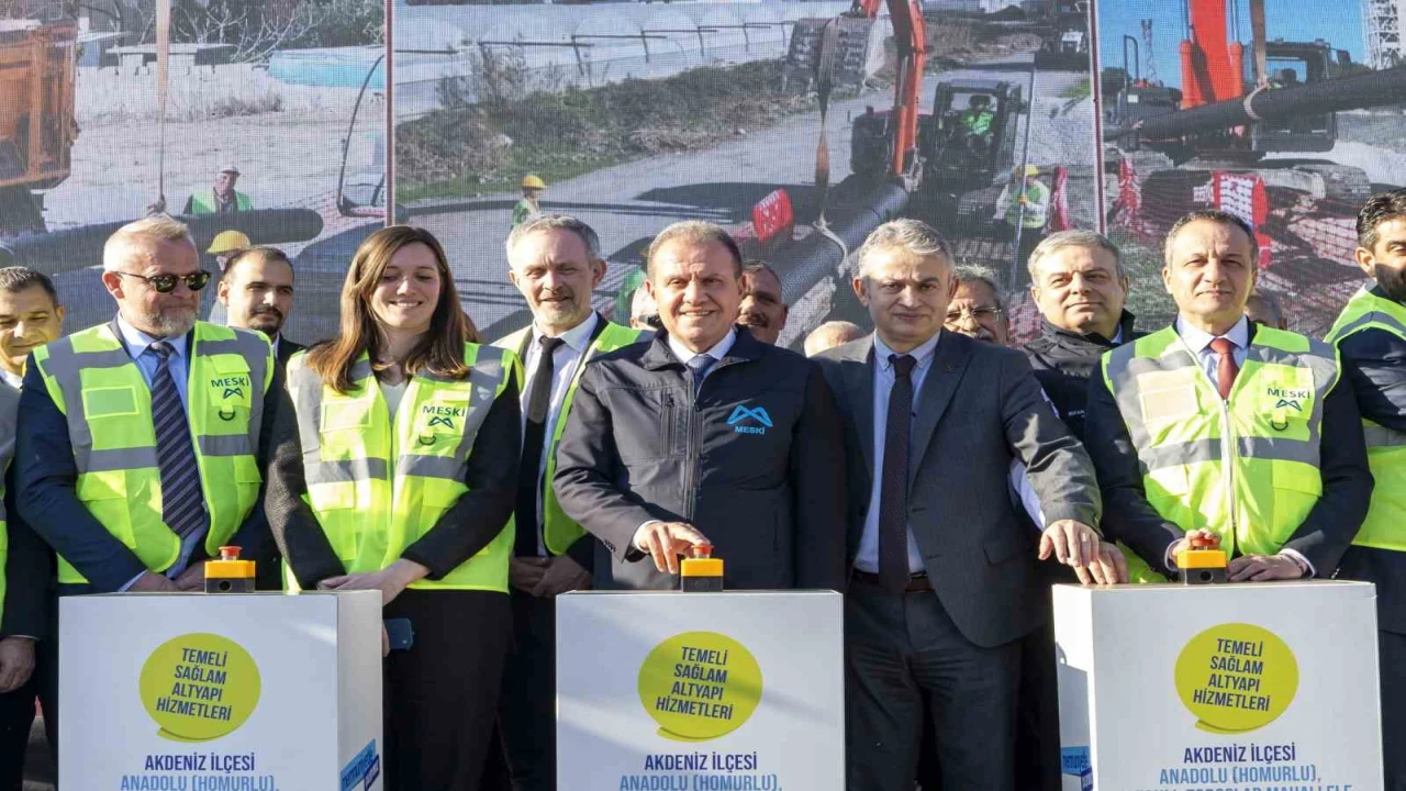 Mersin’de, Fransız Kalkınma Ajansı (AFD) finansman desteği ve İlbank koordinesiyle, Mersin Su ve Kanalizasyon İdaresi (MESKİ) Genel Müdürlüğü tarafından Akdeniz ilçesinde yapılacak ’Anadolu (Homurlu), Kazanlı, Toroslar Mahalleleri Kanalizasyon Projesi’nin temeli törenle atıldı. Avrupa Birliği’nin (AB) 365 milyon 558 bin 269 TL hibe sağlandığı projenin temel atma törenine katılan Büyükşehir Belediye Başkanı Vahap Seçer, "Bu projeleri tamamlandıktan sonra Akdeniz’e bir damla kirli su akmayacak" dedi.
