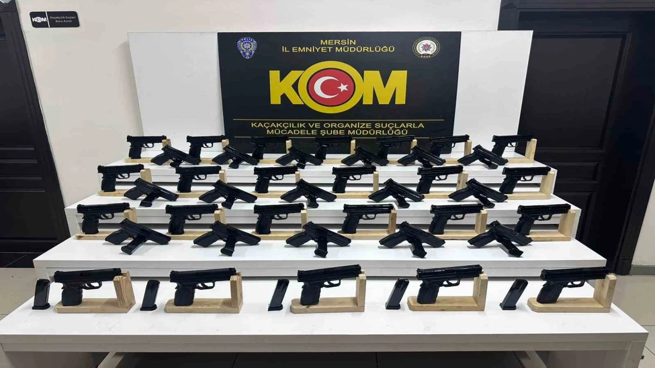 Mersin’de durdurulan araç içerisinde 40 adet kaçak tabanca ele geçirildi, gözaltına alınan 2 şüpheli tutuklandı.