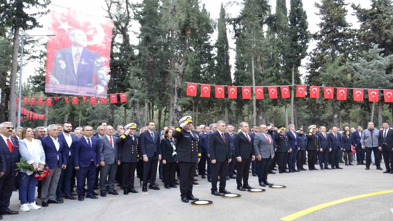 Akbelen Mezarlığı’nda gerçekleştirilen törende, Vali Atilla Toros, Deniz Kuvvetleri Komutanlığı Harekat ve Eğitim Daire Başkanı Tuğamiral Tayfun Karataş, Büyükşehir Belediye Başkanı Vahap Seçer ile Türkiye Harp Malulü Gaziler, Şehitler, Dul ve Yetimleri Derneği Mersin Şube Başkanı Halit Şahin, şehitlik anıtına çelenk sundu. Saygı duruşu ve İstiklal Marşının okunmasının ardından saygı atışı yapılan törende, Teğmen Hüseyin Yılgın, günün anlam ve önemine ilişkin konuşma yaptı, Nevit Kodallı Güzel Sanatlar Lisesi öğrencisi Barış Turan şiir okudu. Törende Vali Toros daha sonra Şehitlik Defterini imzaladı.