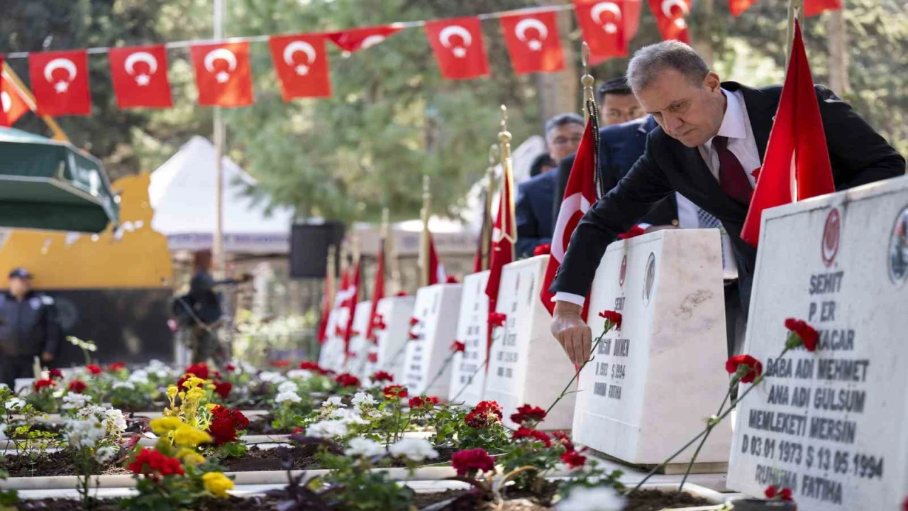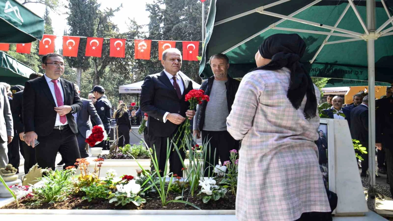 Şehitlikte devam eden törende, Kur’an-ı Kerim okundu. İl Müftüsü Aydın Yığman tarafından yapılan duanın ardından Vali Toros ve protokol üyeleri, şehitlerin mezarlarına karanfil bıraktı.