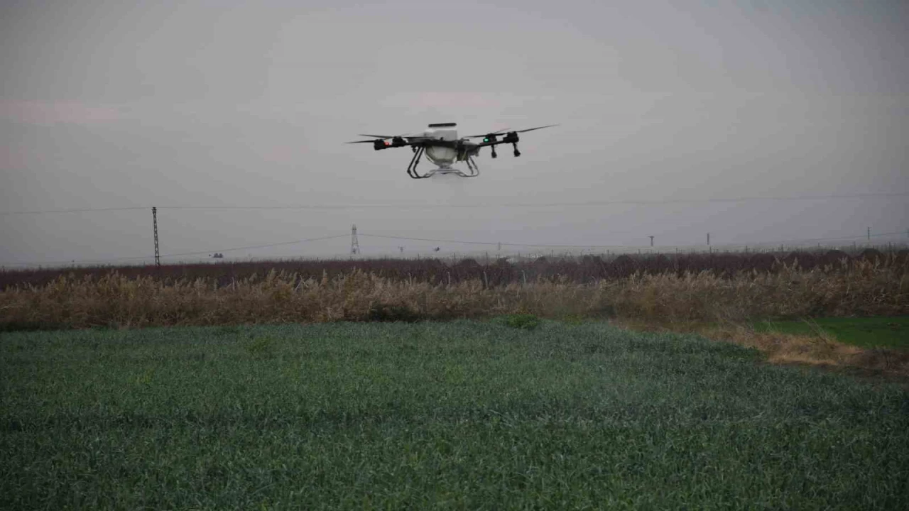 MERSİN'DE ÇİFTÇİLER TARLALARINI DRONLA GÜBRELEME YAPIYOR