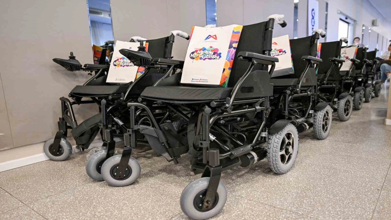 Mersin’de ihtiyaç sahibi 60 engelliye akülü sandalye dağıtıldı.