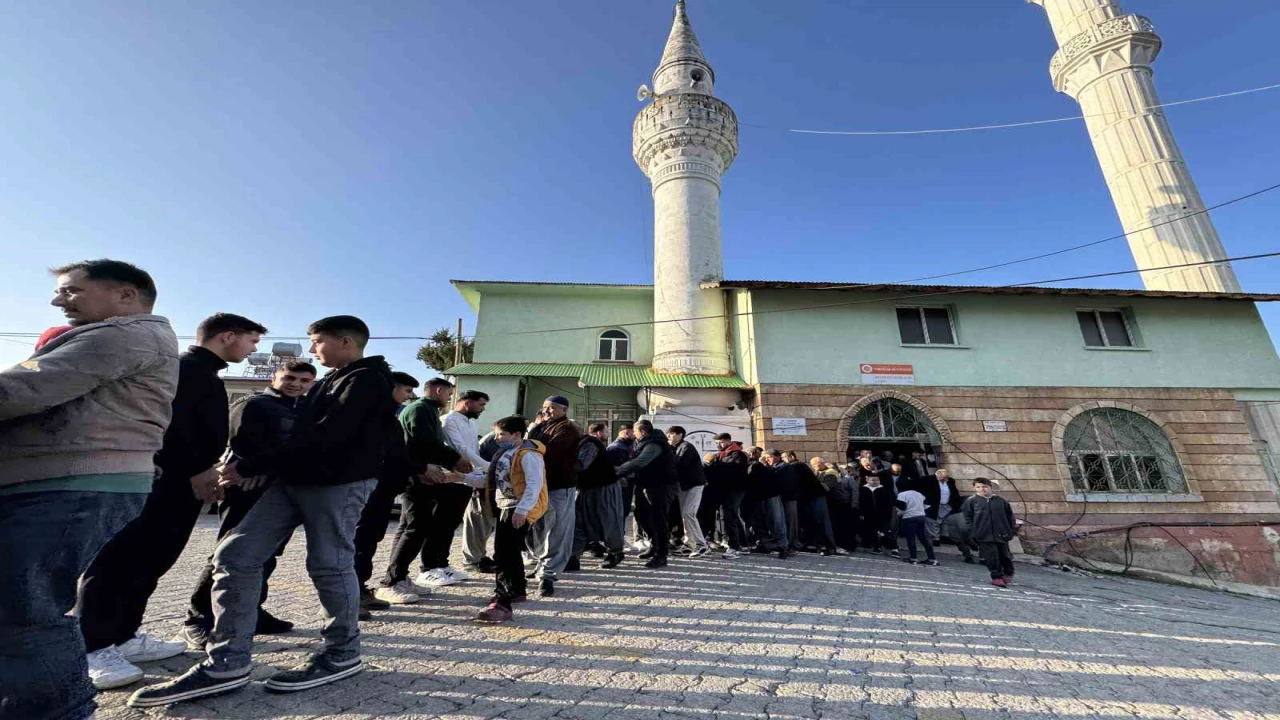 Mersin’in merkez Toroslar ilçesine bağlı Değirmendere köyünde vatandaşlar, geleneksel hale gelen bayramlaşma törenini sürdürdü. Cami çıkışı birbirleriyle bayramlaşan köylüler, meydanda kuyruk oluşturdu.