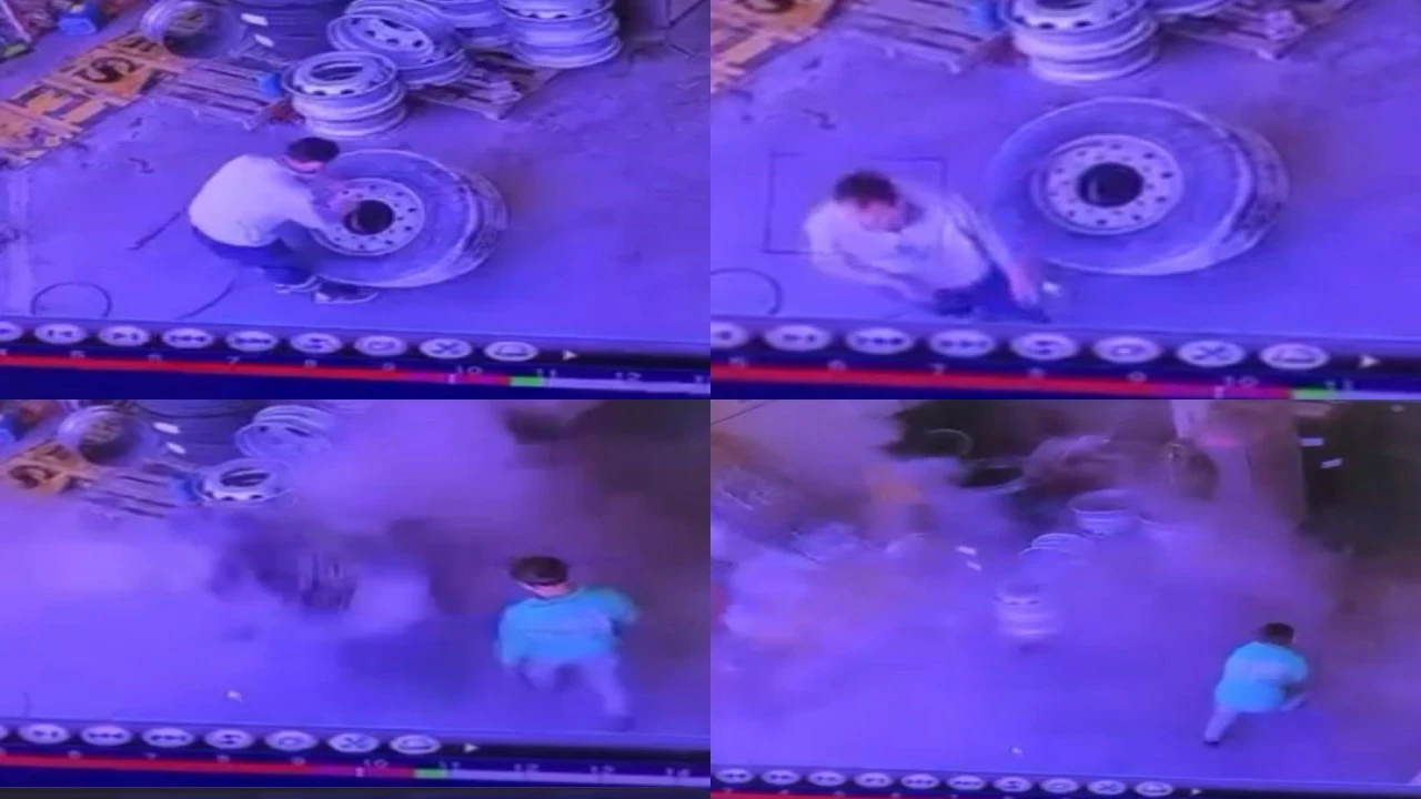 Olay anı ise güvenlik kamerasına yansıdı. Görüntülerde lastiği tamir etmeye çalışan Ali Doğan iğneyi almak için arkasını döndükten kısa süre sonra lastiğin bomba gibi patladığı anlar yer aldı.