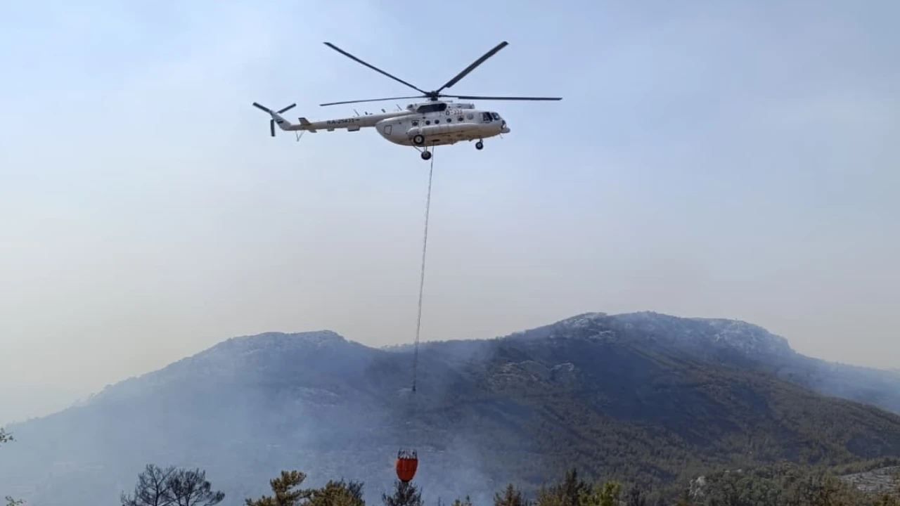 ÖNCEKİ GÜN SİLİFKE İLÇESİ SINIRLARINDA ÇALTI (ÇAMLICA), BALANDIZ VE KIRTIL MAHALLELERİ ARASINDA KIRTIL TEPESİ GÖZETLEME KULESİ YAKINLARINDA ÇIKAN VE ORMANA SIÇRAYAN YANGINA 7 İLDEN BİNDEN FAZLA PERSONELLE KARADAN VE HAVADAN MÜDAHALE EDİLMİŞTİ