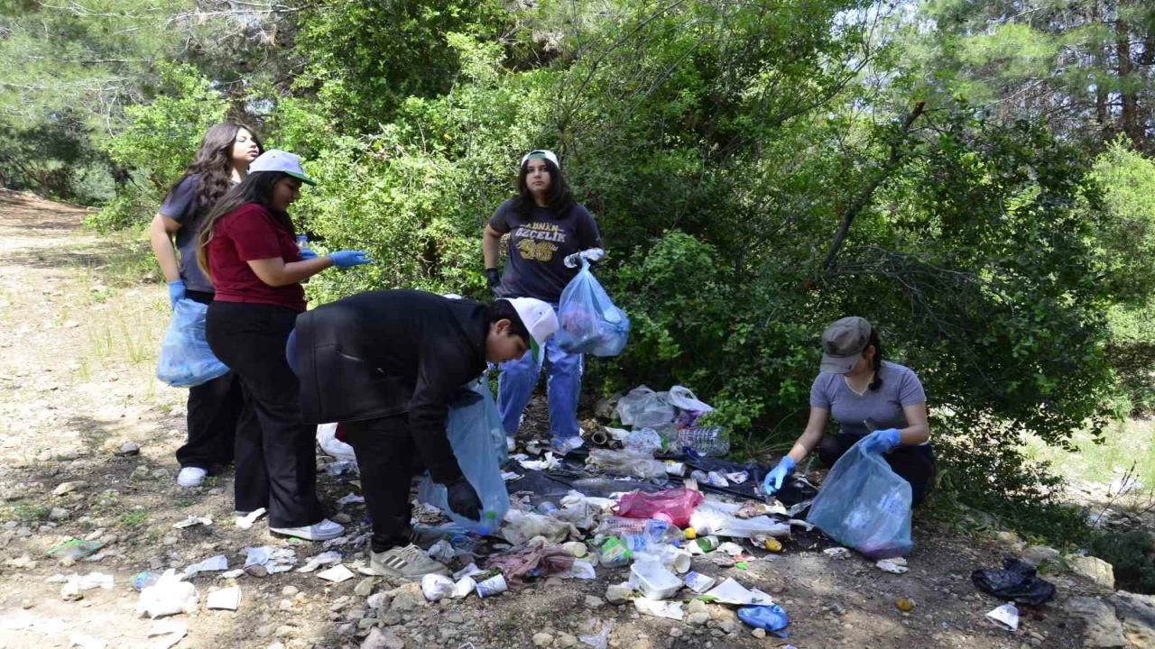 MERSİN'DE ÖĞRENCİLER 'ORMAN BENİM' KAMPANYASI ÇERÇEVESİNDE ORMANLIK ALANDA TEMİZLİK YAPTI.